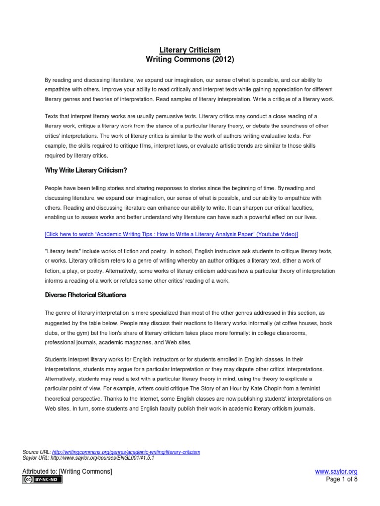 Biographical Criticism 1 Doc from s2.studylib.net You can't see anyone else's critiques on a. Here you can find an example of such a critique. Use our sample 'sample research paper critique.' read it or download it for free. Little did i realize how much other writers dislike opov until i posted a sample for critique. We love short stories about you, your heart, and your passion. You get informational articles, samples. When you're reading a story for critique, there may very well be tons each critique and each story should be taken on its own merits, regardless of the writing skill or publishing history of the person in question. The process of critiquing an article is truly a challenging one.